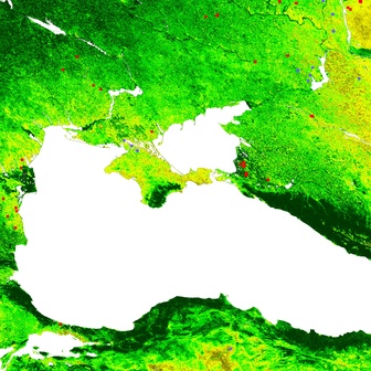 backgroundは当該月のNDVIです。