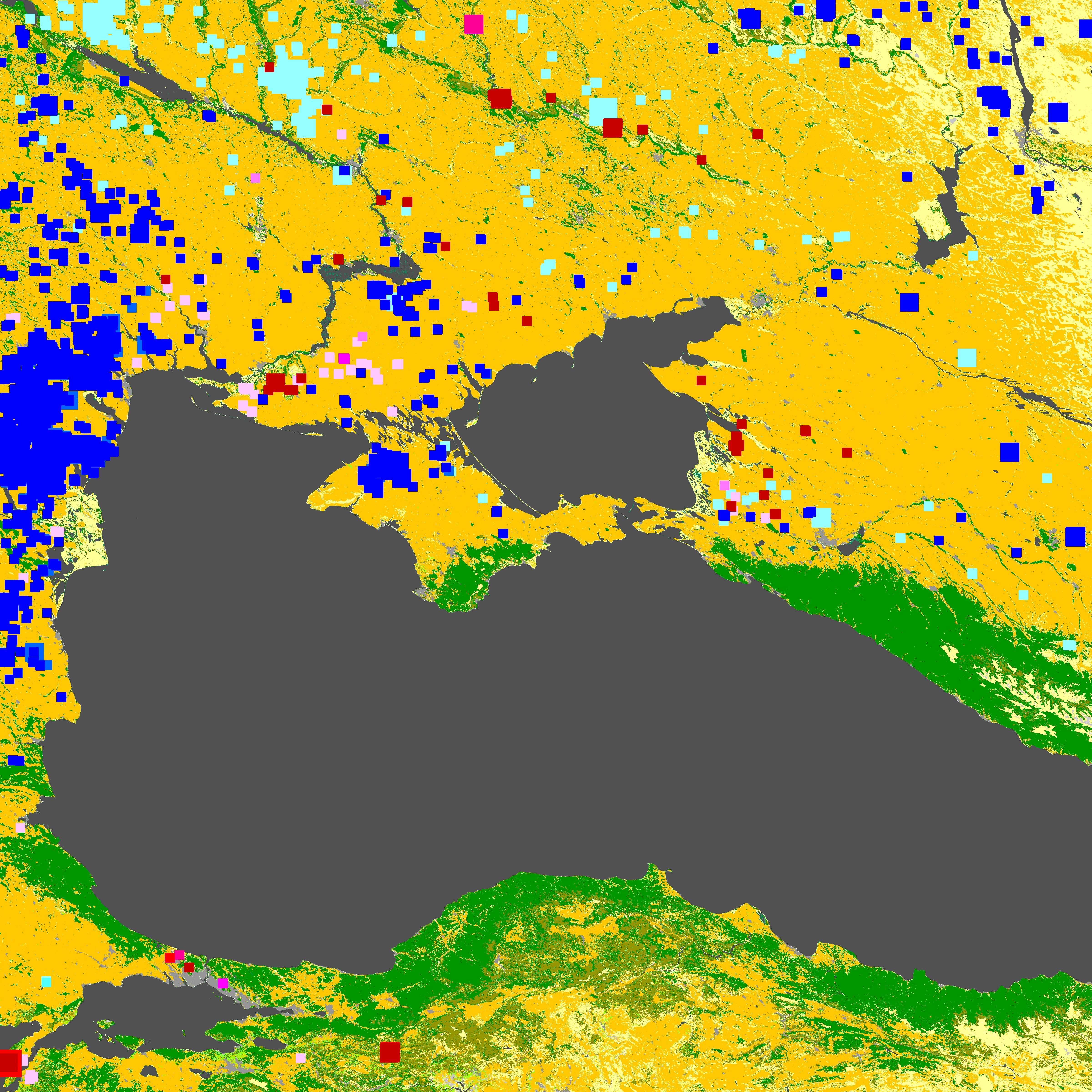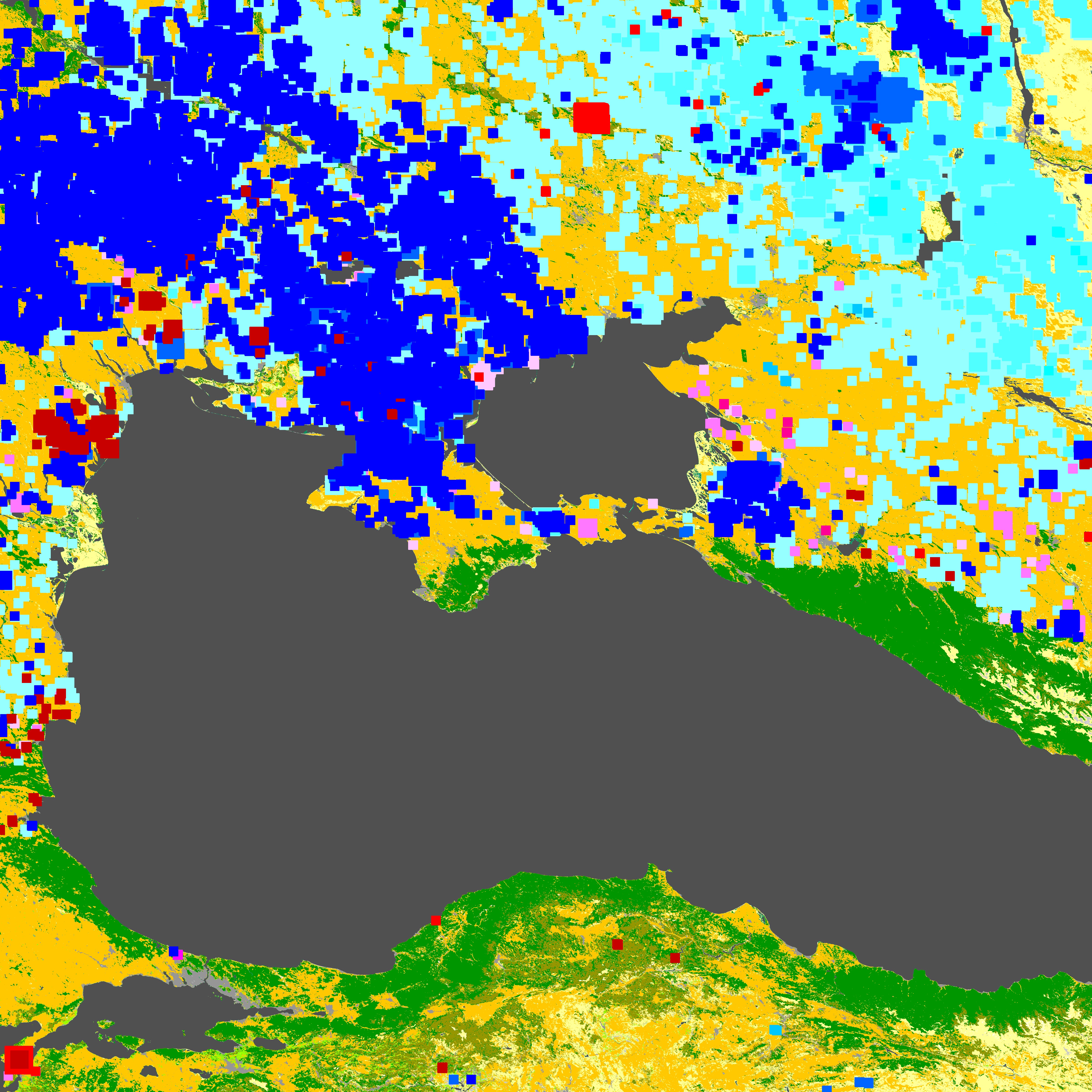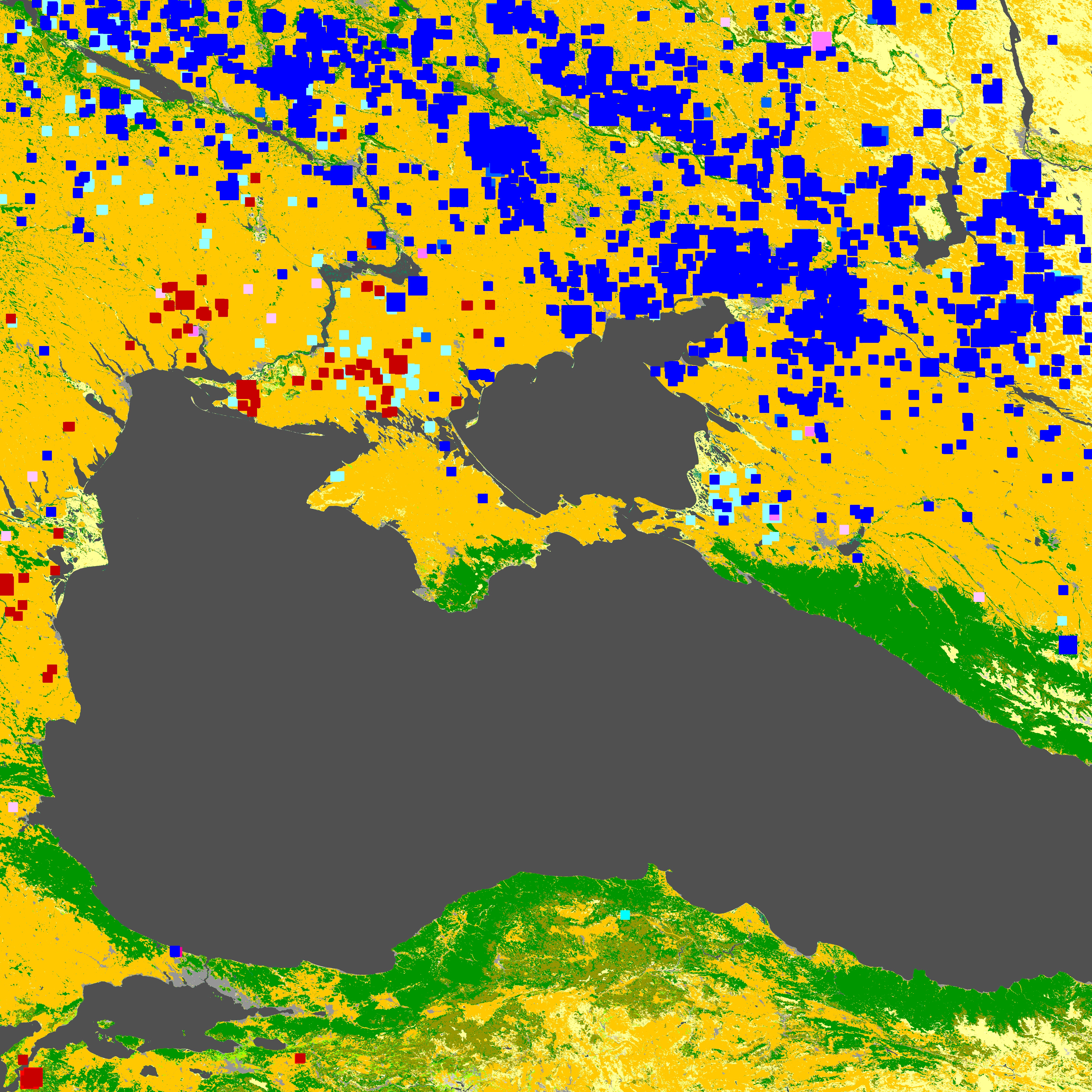 青:植生密度増加タイプの変化箇所。